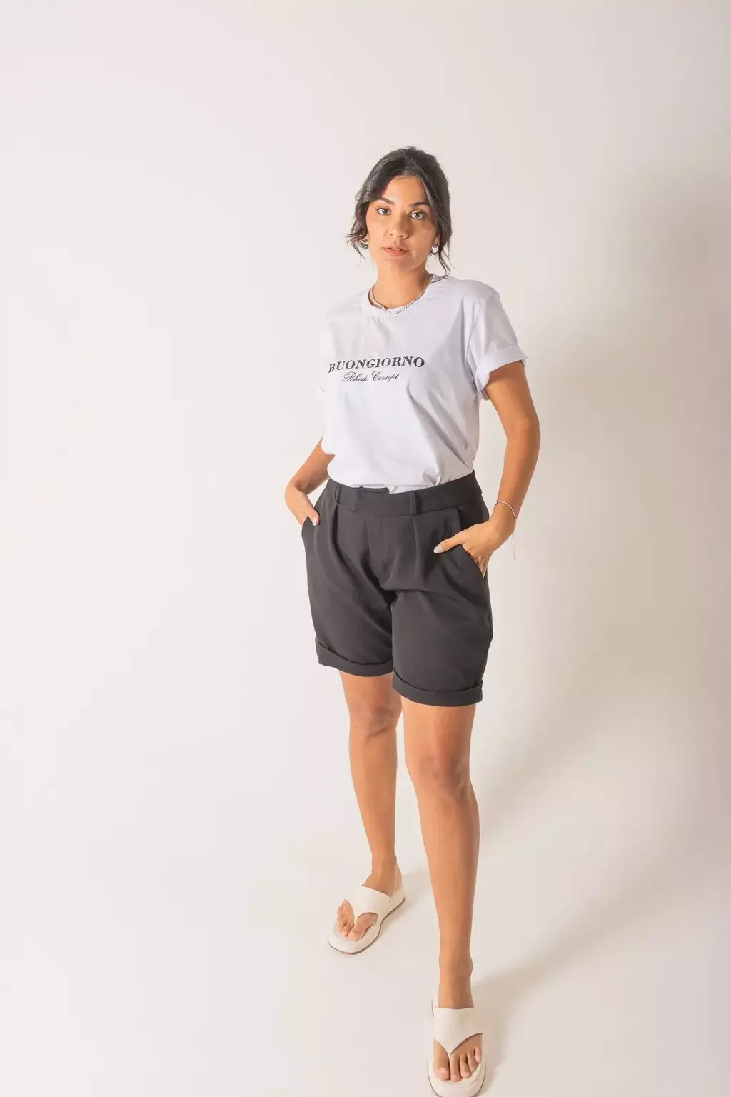 Tecido: Alfaiataria (96% Poliéster 4% Elastano). O tom pode variar de acordo com o lote do tecido.